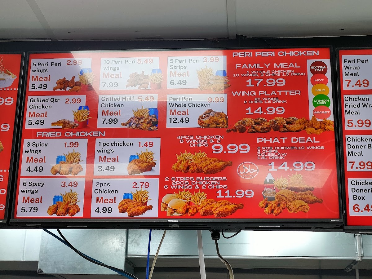 - Meal Deals: These combine popular main dishes such as peri peri chicken burgers, fillet burgers, smash cheese burgers, chicken wraps, and spicy wings, often paired with sides like fries or onion rings and a drink for set prices.